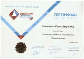В 2012 году закончила переподготовку по специальности «Стоматология Терапевтическая» и «Стоматология хирургическая» на базе УНМЦ при управлении делами президента
